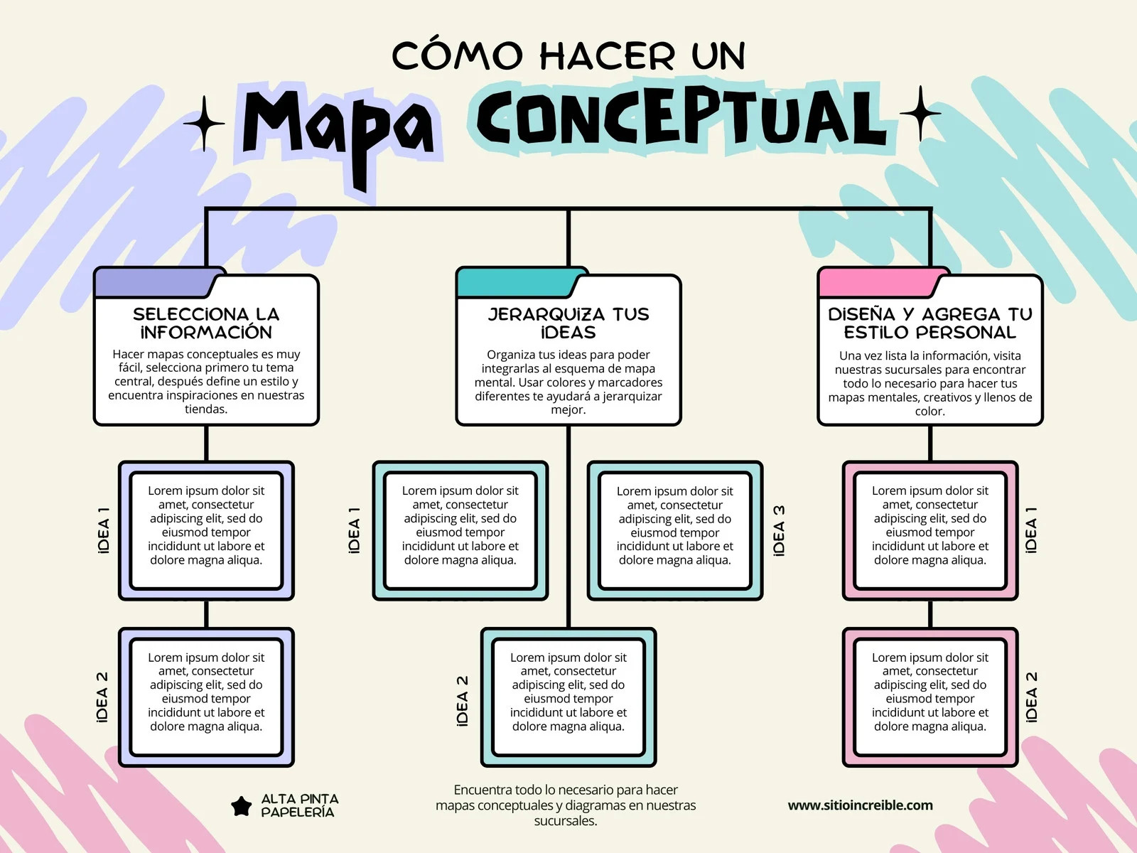 Representación gráfica de conceptos, organizados de lo general a lo específico. Usa flechas y figuras para mostrar relaciones. Útil para estudiar y entender temas complejos.