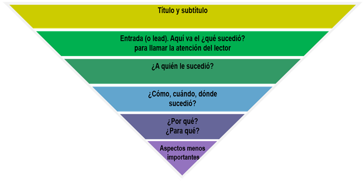 La nota informativa es el texto más común, y se estructura con la técnica de pirámide invertida, respondiendo a las preguntas clave: ¿Qué?, ¿Quién?, ¿Cómo?, ¿Cuándo?, ¿Dónde? y ¿Por qué?
